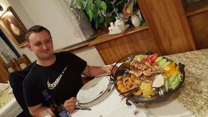Po nějaké chvíli však přišel ten zlom, kdy ještě na platu zbývala tak celá porce pro jednoho a my už byli plní. Po posledním zafunění jsme to vzdali a poprosili servírku, zda si můžeme odnést zbytek s sebou, že už opravdu nemůžeme, že se to zkrátka nedá. Servírka se na nás usmála a řekla, že v týdnu tam měla opravdové jedlíky – tři chlapy, co si objednali každý jedno celé plato jen sami pro sebe a ještě si dali předkrm a dezert jako tečku. Nechápali jsme, ale ani jsme na to nic neřekli, jen jsme stačili znovu ,,zafunět“ .