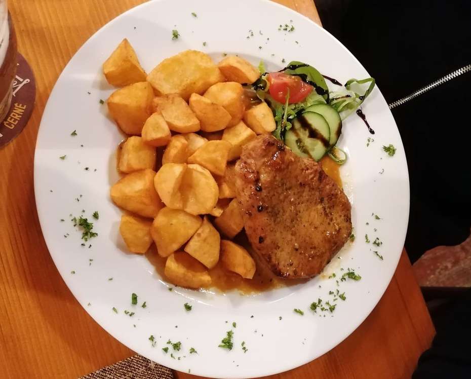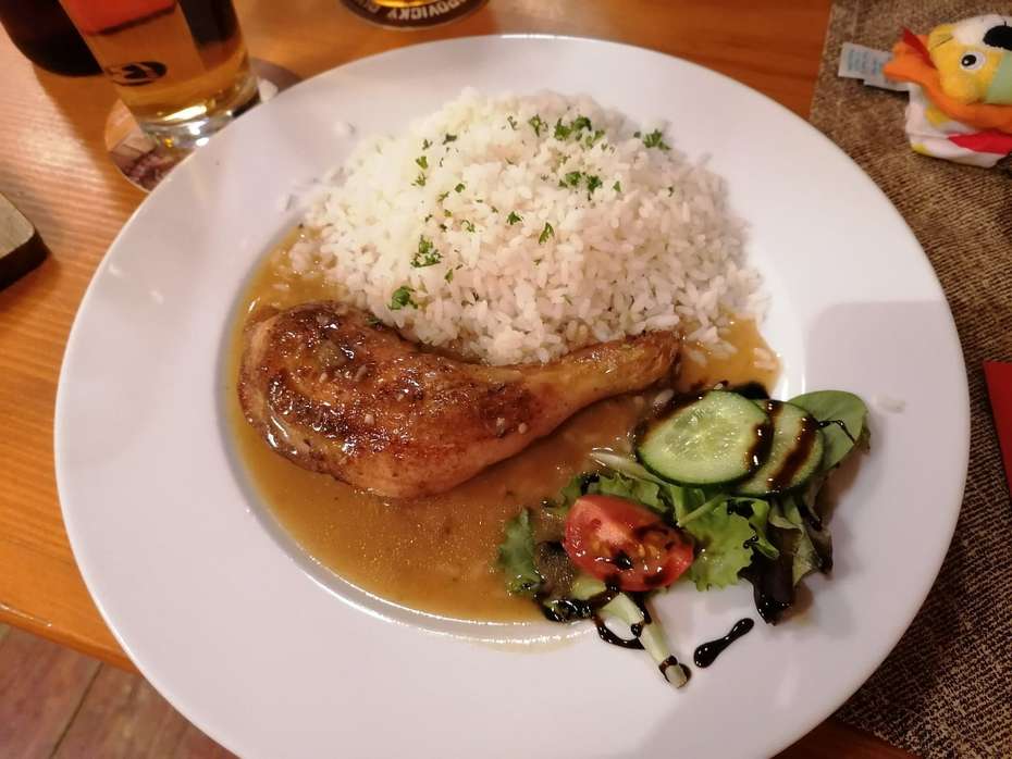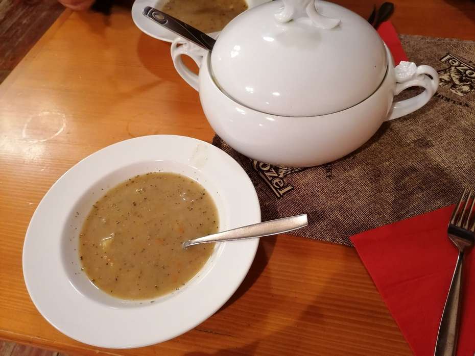 A ty večeře! Ty musíme opravdu vynachválit. Dostali jsme na výběr ze 3 jídel. Polévka byla daná a přinesou vám ji přímo ve velké míse s naběračkou, takže si můžete nandat kolik chcete. Čekali jsme, že nám po nandání do talíře mísu hned odnesou nebo že v tom bude nějaký háček a budeme muset mísu poslat k dalšímu stolu :) Ale všechno bylo jen a jen pro nás. Porcí v míse bylo opravdu dost a byla tak dobrá, že jsme si stále přidávali... Hned na to přinesli druhé jídlo a měli jsme co dělat, abychom to všechno snědli.. Jídlo výborné, porce veliké a číšník se neustále vyptával, zda něco ještě nepotřebujeme. Prostě paráda a radost dál posedět :)