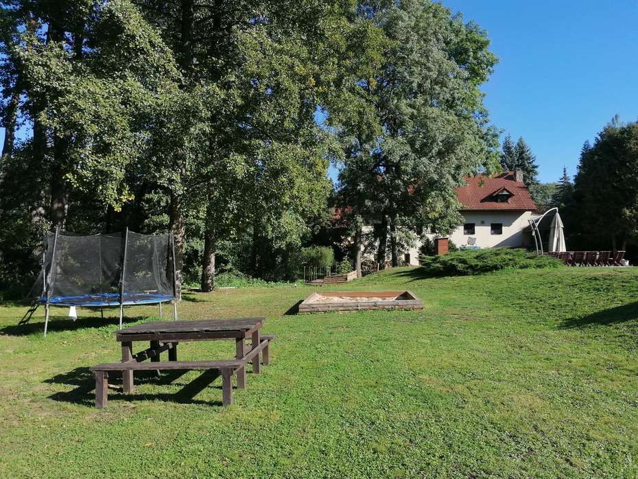 Děti zde najdou také pískoviště, trampolínu a prolézačky s houpačkou. V létě to musí být tedy dokonalý relax, kdy se zabaví opravdu celá rodina.