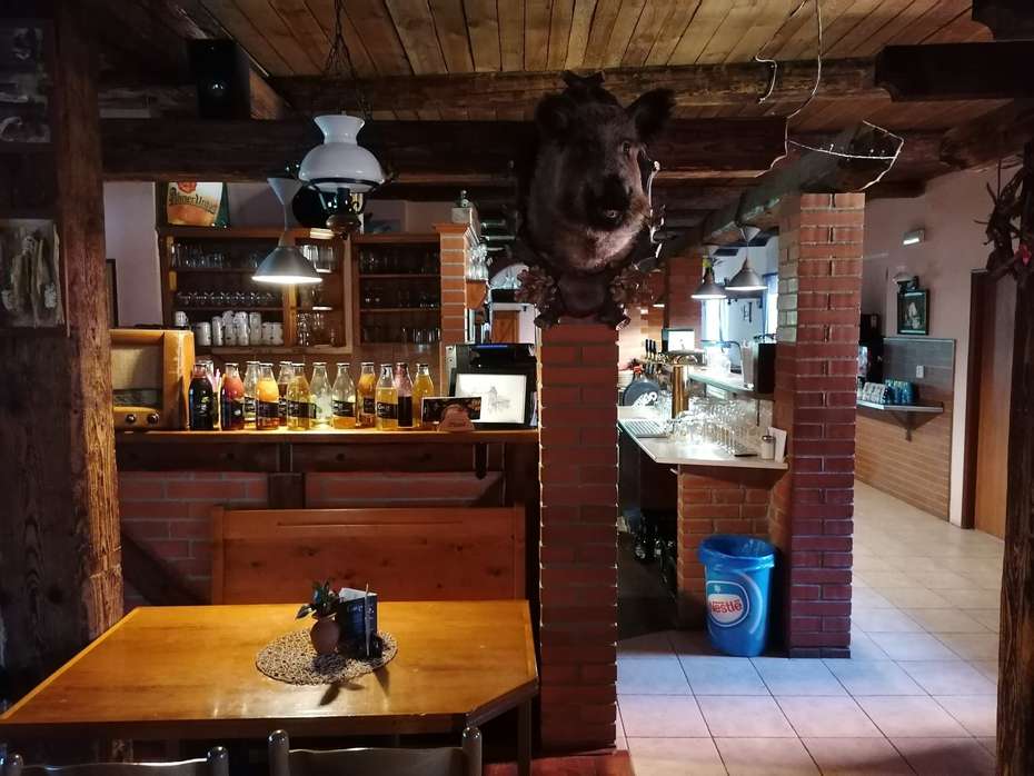 Hotel je zařízen v rustikálním stylu. Hned za recepcí vstoupíte do restaurace, jejíž dominantou je velký rohový krb. Dostali jsme pokoj č. 12. Po příchodu do pokoje nás překvapilo nádherné teplíčko. Báli jsme se, že ještě nebude topná sezona a na konci září nám bude na pokoji zima. Ale na pokoji bylo opravdu příjemně, vyloženě jako doma, kdy si můžete sundat kalhoty a pošlapovat si bosí :)