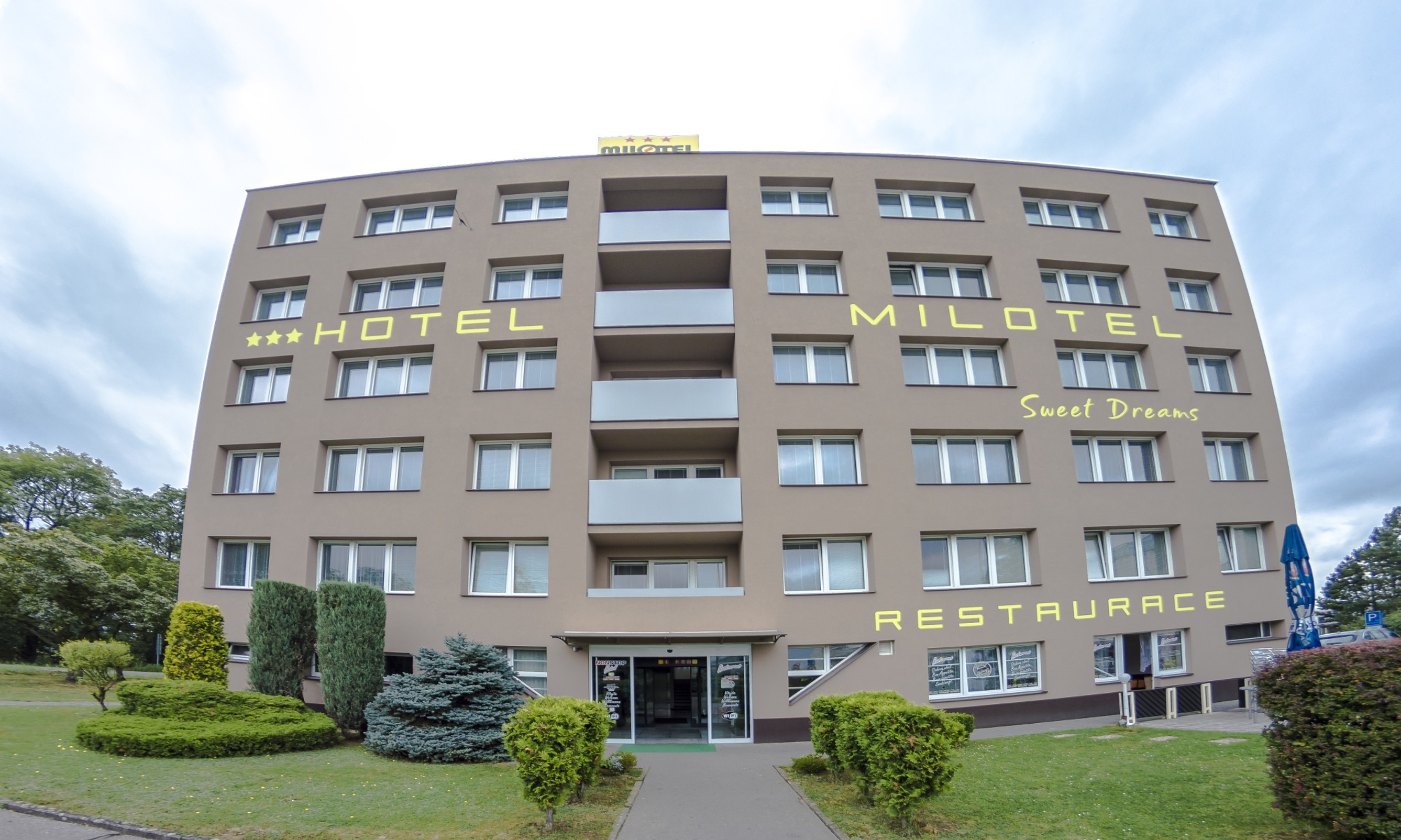 Hotel Milotel*** Olomouc se nachází v blízkosti hlavní silnice směr Ostrava, přesto však na příjemném místě mimo ruch města, a nabízí možnost parkování nejen osobních aut ale i autobusů.
