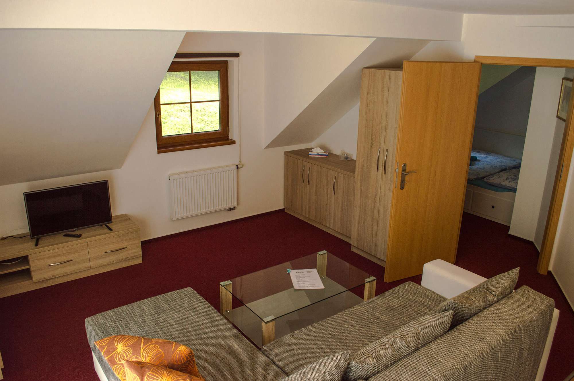 Ubytovaní budete v úplně nových apartmánech v podkroví chaty, které mají vlastní sociální zařízení a výhled do okolní přírody. Každý apartmán má varnou konvici s šálky na přípravu kávy, čaje, sklenice na víno, minilednici a TV. Volopenze. Dále je možno se ubytovat v rodinných apartmánech, které se nachází v přízemí Chaty Jany. Každý apartmán má ve své výbavě vlastní krb, sociální zařízení, televizi a vybavenou kuchyň (mikrovlnnou troubu, lednici, vařič nebo nádobí a varnou konvici)