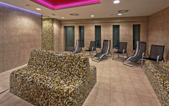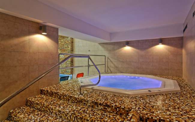 Nechybí zde ani odpočinková zóna, terasa, bublinková terapie v podobě whirlpool pro 6-8 osob a teplotou vody až 38 °C.