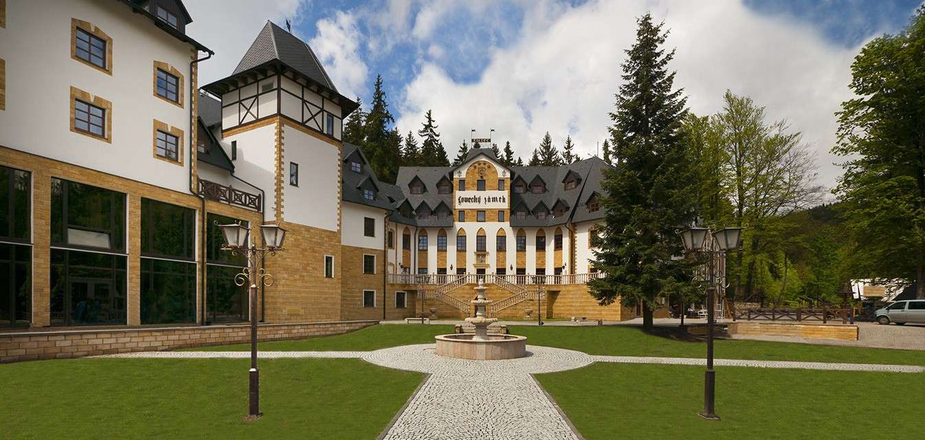 SPA hotel Zámek Lužec**** stylizovaný jako lovecký zámeček českého krále Karla IV. vás svým vzhledem a zařízením interiérů přenese do slavných dob minulosti. Jediné, co působí současně, je vynikající úroveň péče a maximální komfort, počínaje krásně zařízenými pokoji a konče širokým sortimentem relaxačních programů.