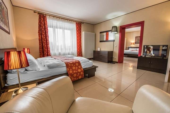 K dispozici jsou také 4 prostorné, světlé, stylově zařízené apartmány , které jsou vybaveny TV SAT, rádiem, wifi připojením a trezorem. Kuchyň je kompletně zařízená (plyn. kamna, el. trouba, chladnička s mrazákem, mikrovlnka, rychlovarná konvice, kuch. náčiní a nádobí). Koupelna má sprchový kout, bidet, umyvadlo, vysoušeč vlasů a WC.