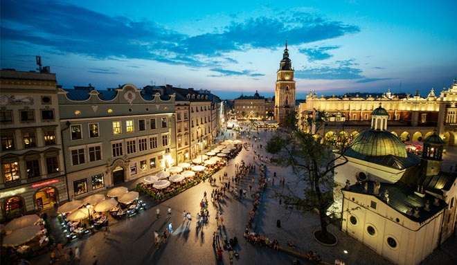 Jedno z nejkrásnějších evropských náměstí je Rynek Główny . Je největším středověkým tržištěm v Polsku a celé střední Evropě. Dosud zůstalo nejdůležitějším uzlem Starého města.