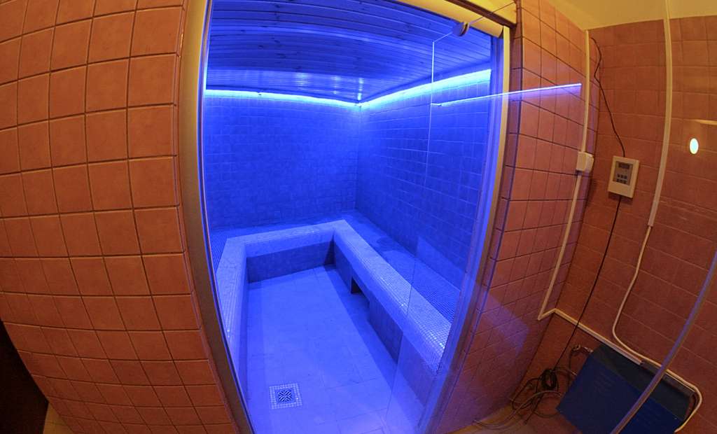 Sauna je zahřátá na teplotu 50 – 90 °C, nalitím vody na kameny dosáhnete vlhkost 25 – 40 %. Mokrá sauna je šetrnější k lidskému tělu než suché sauny.