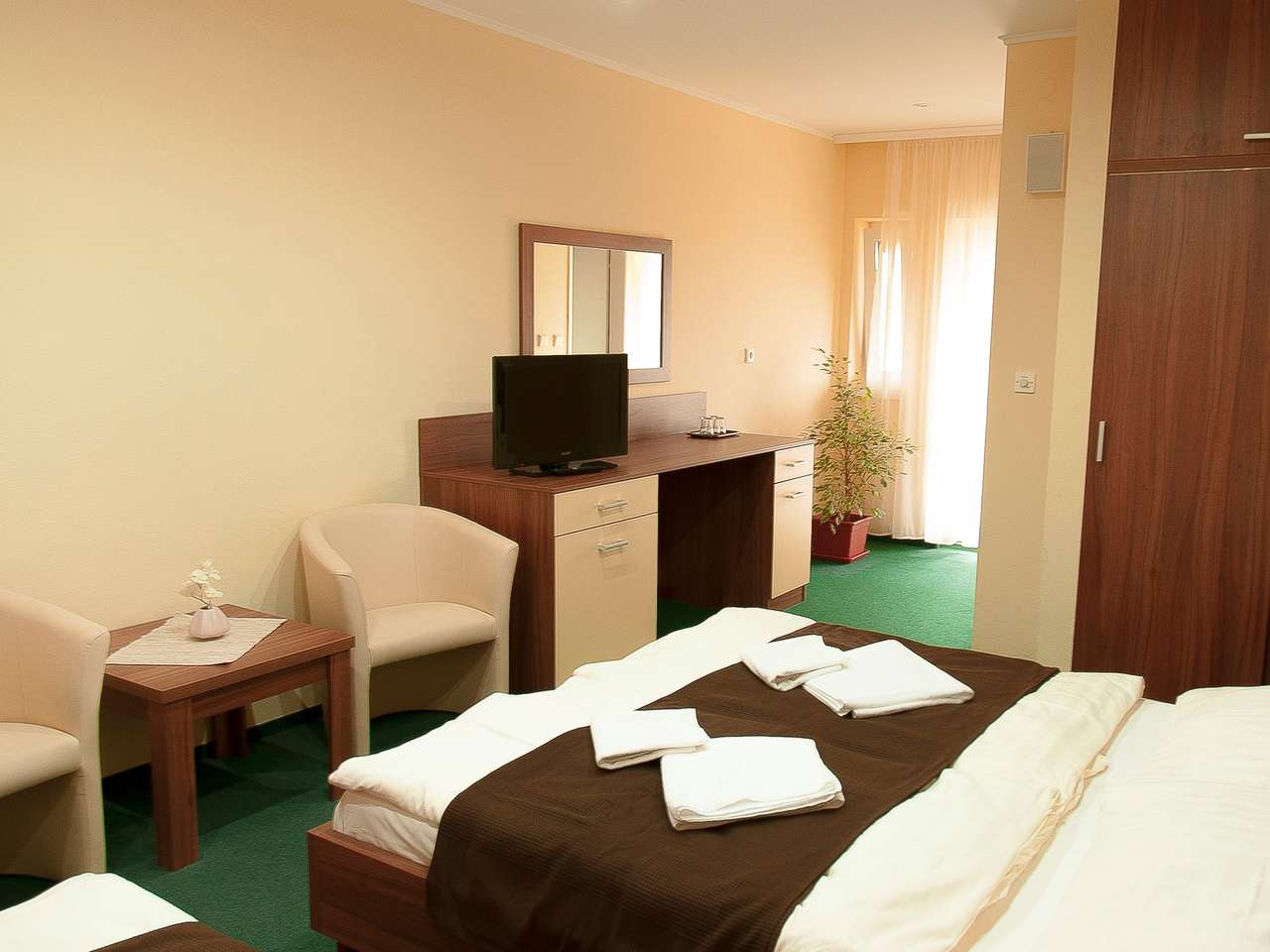 Každý pokoj má vlastní sprchu , WC, TV, lednici, balkon nebo terasu . Všechny pokoje jsou propojeny se světem - mají přístup na internet . Svůj volný čas můžete trávit v příjemném prostředí. Bezplatné parkování pro vaše auto je k dispozici na nádvoří penzionu.