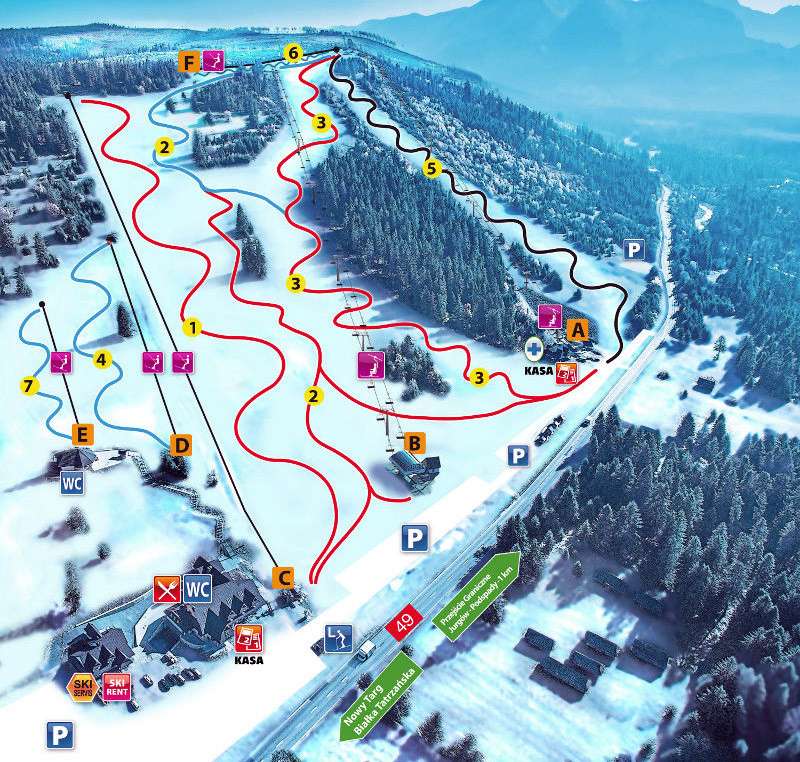 Oblíbené středisko Slováků a všech klientů ubytovaných ve Ždiaru či Bialce Tatranské . Jurgow Ski se nachází na hlavní trase, 2,5 km jižně od centra obce Jurgów, ve Spisko-Gubałowské dolině, pouze kilometr od státní hranice se Slovenskem. Sjezdovky o celkové délce 4,5 km leží na severozápadních svazích vrchu Górków Wierch (1 045 m nm).