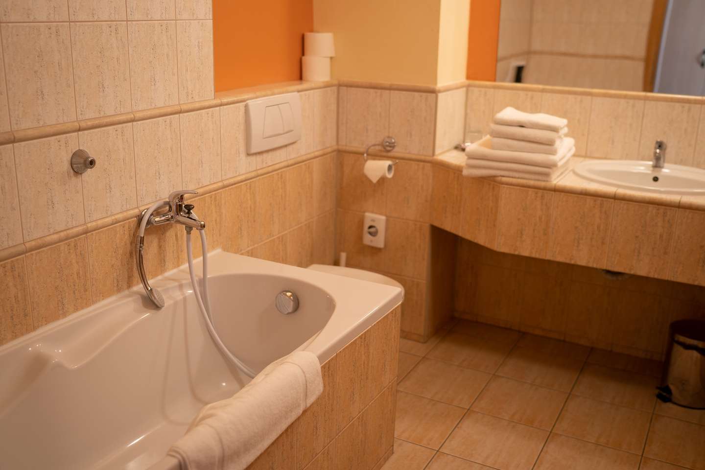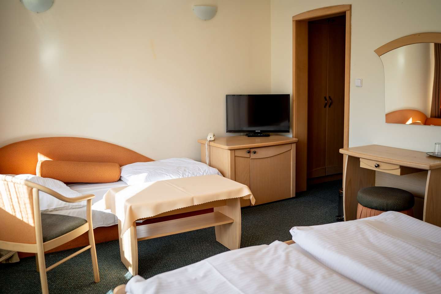 K dispozici je 63 pokojů se 140 pevnými lůžky, 38 přistýlkami a 4 dětskými postýlkami v pokojích a apartmánech. Vybírat můžete z 1 a 2 ložních pokojů, rodinných pokojů, apartmánů. Všechny pokoje jsou vybaveny vlastní koupelnou a WC, TV/SAT. Vybrané pokoje jsou vybaveny internetovým připojením. Samozřejmostí jsou také pokoje s bezbariérovou úpravou.
