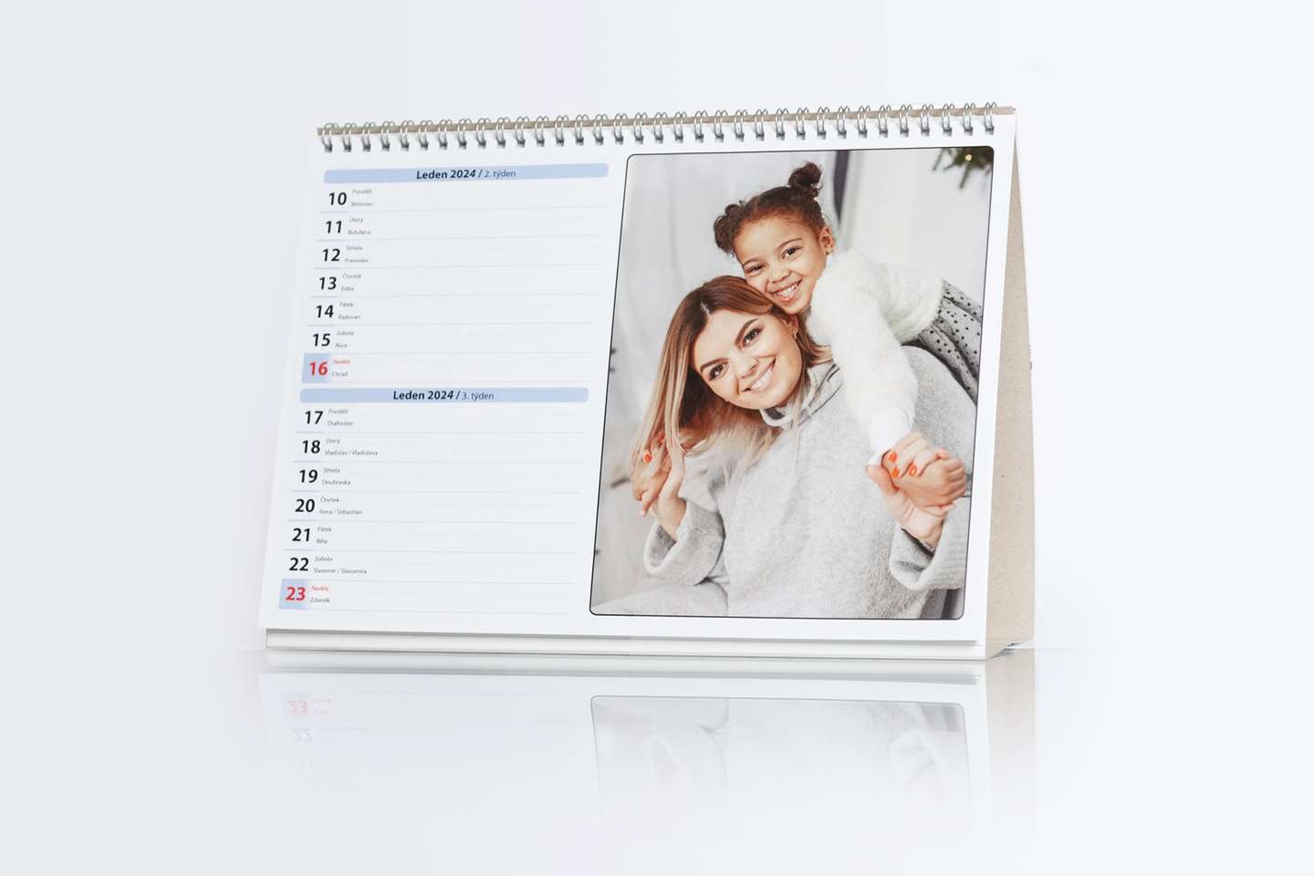 Ozdobte svůj stůl originálním a praktickým stolním kalendářem a mějte své oblíbené vzpomínky vždy na očích. Kalendář z vašich fotografií je možnost, jak si připomenout jedinečné vzpomínky a výborně se hodí do dětského pokoje, kuchyně i kanceláře. Ideální jako dárek vašim rodičům, dětem, příbuzným i kamarádům.