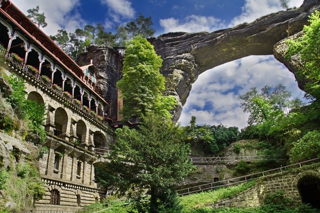 Pravčická brána – symbol Českého Švýcarska je jednou z největších zajímavostí, zároveň i národní, přírodní památkou, považovanou za nejkrásnější přírodní útvar Českého Švýcarska, ale také největší skalní bránu ve střední Evropě. Neuvěřitelným rozpětím 26 metrů a výškou 16 metrů budí přirozený respekt. Sokolí hnízdo, slavný zámeček, kde můžete posedět ve stylové restauraci, je její nedílnou součástí.