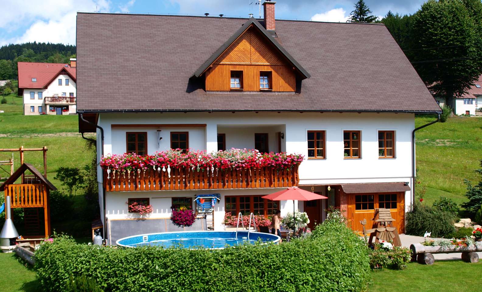 Ve volných chvílích můžete své děti vypustit na zahradu, kde je velmi pěkně vybavené dětské hřiště (zahradní domek se skluzavkou a pískovištěm, lezecká a síťová stěna, velká i malá houpačka, dětská lanovka…), kde si Vaše děti užijí spoustu zábavy, zatímco Vy můžete odpočívat na čerstvém vzduchu a jen tak dohlížet.