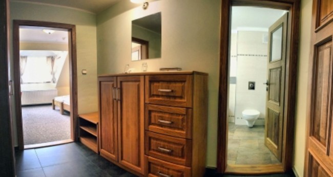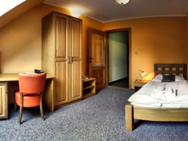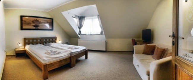Překvapí vás nadstandartní rozměry pokojů 1x jednolůžkový pokoj o rozměrech 25 m2, dále 13 dvoulůžkových pokojů o rozměrech 40 m2 a trojlůžkový pokoj o 45 m2, všechny pokoje jsou možné s přistýlkou a nekuřácké. Zařízen stylovým masivním dubovým nábytkem a pohodlnou matrací s kvalitním roštem pro váš dlouhý a ničím nerušený spánek. Samozřejmostí je vlastní sociální vybavení na pokoji a vysokorychlostní internet, dále TV s přípojkou a DVD přehrávačem.