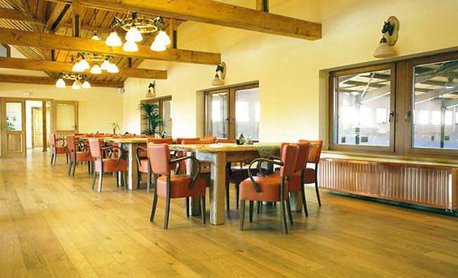 Užijte si příjemné posezení v dvoupatrové restauraci s vlastním barem, útulným krbem a terasou nebo si můžete vybrat posazení ve druhém patře s dalším barem, krbem a terasou. Sledovat můžete výcvik na parkurovém hřišti nebo venkovní jízdárna, kde v pozadí jde vidět Ještěd. Vaří se zde česká a zahraniční kuchyně nebo z jídelníčku, kde najdete jehněčí hody, rybí hody, zvěřinovou zvěř. Často se zde probíhají i tématické večery například na téma Country nebo Svatomartinské hodování. Ochutnat můžete i výtečná vína, které mnoho hostů chválí a oceňuje.