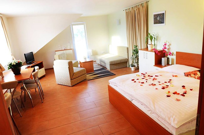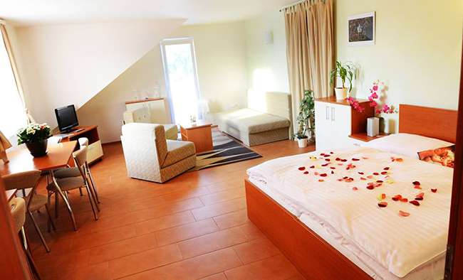 Apartmány jsou plně vybaveny: kuchyňský kout (varná deska, lednice, varná konvice, mikrovlnná trouba); samostatná koupelna se sprchou a toaletou, dvě lůžka, rozkládací souprava, satelitová televize, rádio, internetové připojení a venkovní terasa. Ubytování uspokojí i ty nejnáročnější návštěvníky!