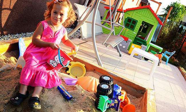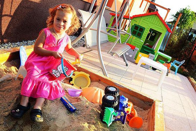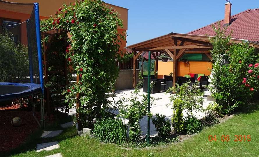 K dispozici je i dětské hřiště – pískoviště, hračky pro děti i velká dětská trampolína přímo na zahradě penzionu.