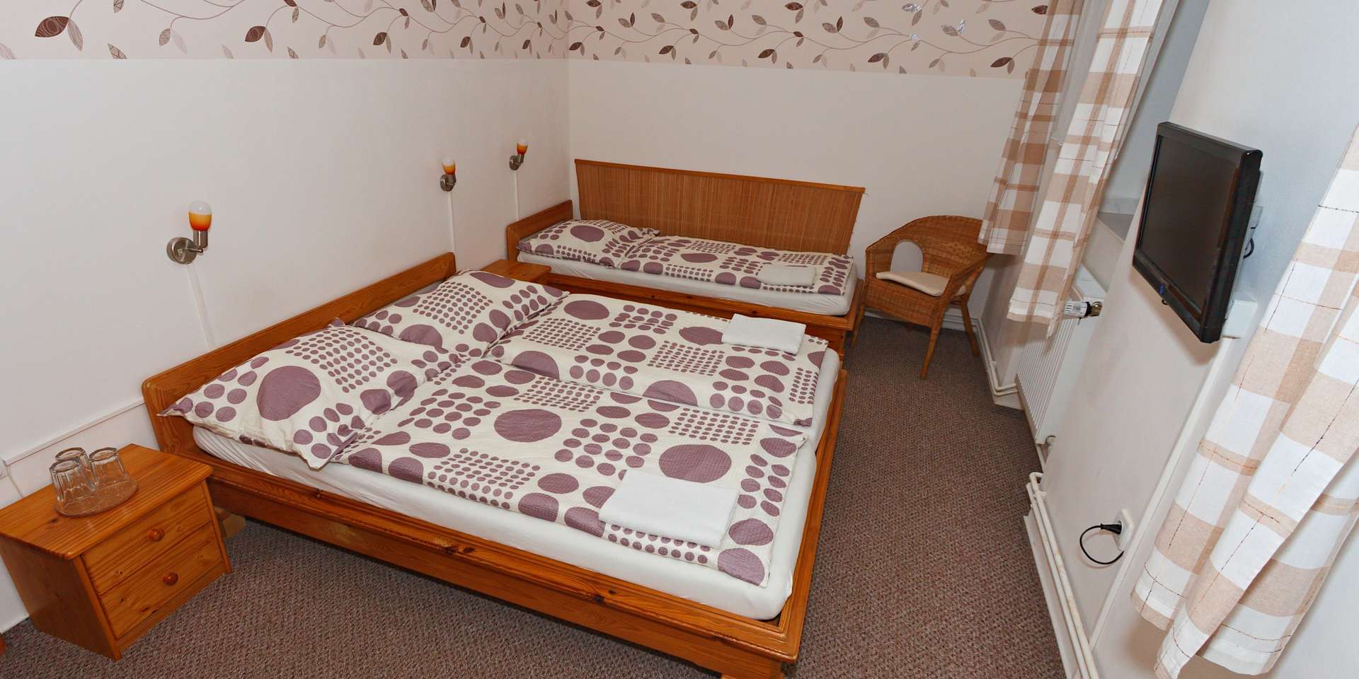 Ubytováni budete v komfortně zařízeném pokoji s vlastním sociálním zařízením a LCD televizí. Celková kapacita hotelu čítá 48 lůžek rozdělených do 2, 3 a 4lůžkových pokojů. Hotel má bezbariérový přístup, vlastní parkoviště a samozřejmostí je i Wi-Fi připojení.