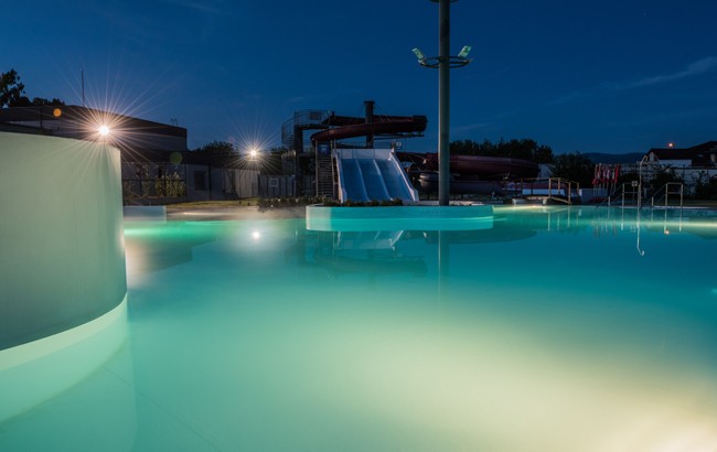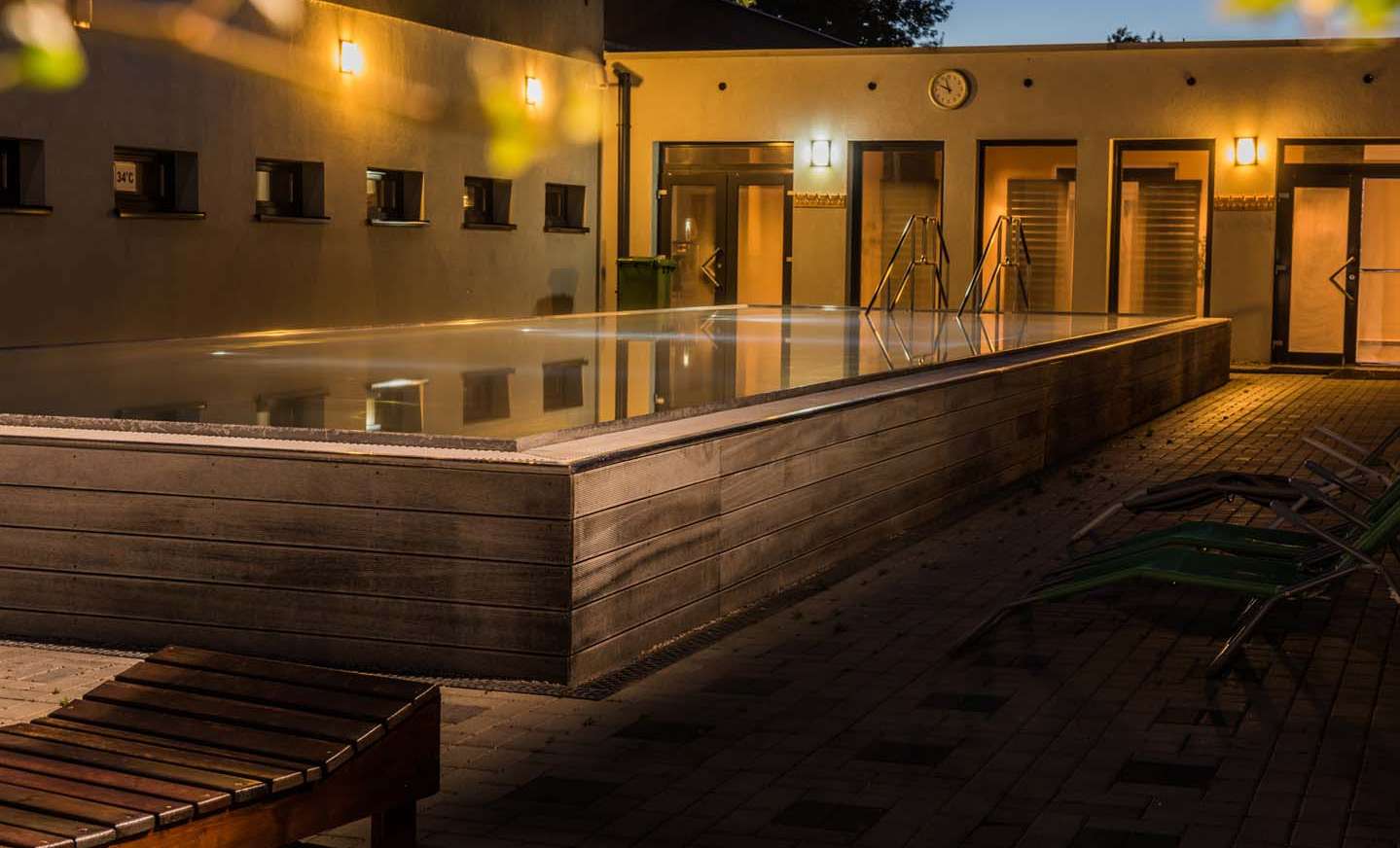 K dispozici je vám vířivý bazén s perličkovou hydromasáží, saunové centrum, různé druhy masáží nebo odpočinkový a vnější relaxační bazén.